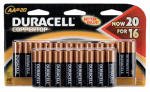 Duracell, 20 Pack, 'AA' Alkaline Battery, Doublewide Pack.